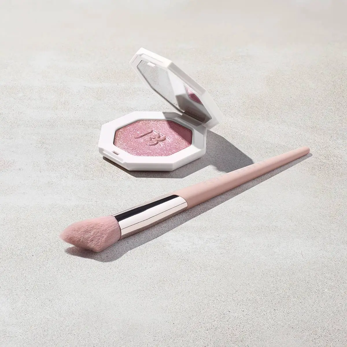 Apply Fenty Beauty Killawatt Freestyle Highlighter using a brush or fingertips on the high points of your face—cheekbones, brow bones, nose bridge, and cupid’s bow. For extra dimension, layer or mix shades for a customized glow.